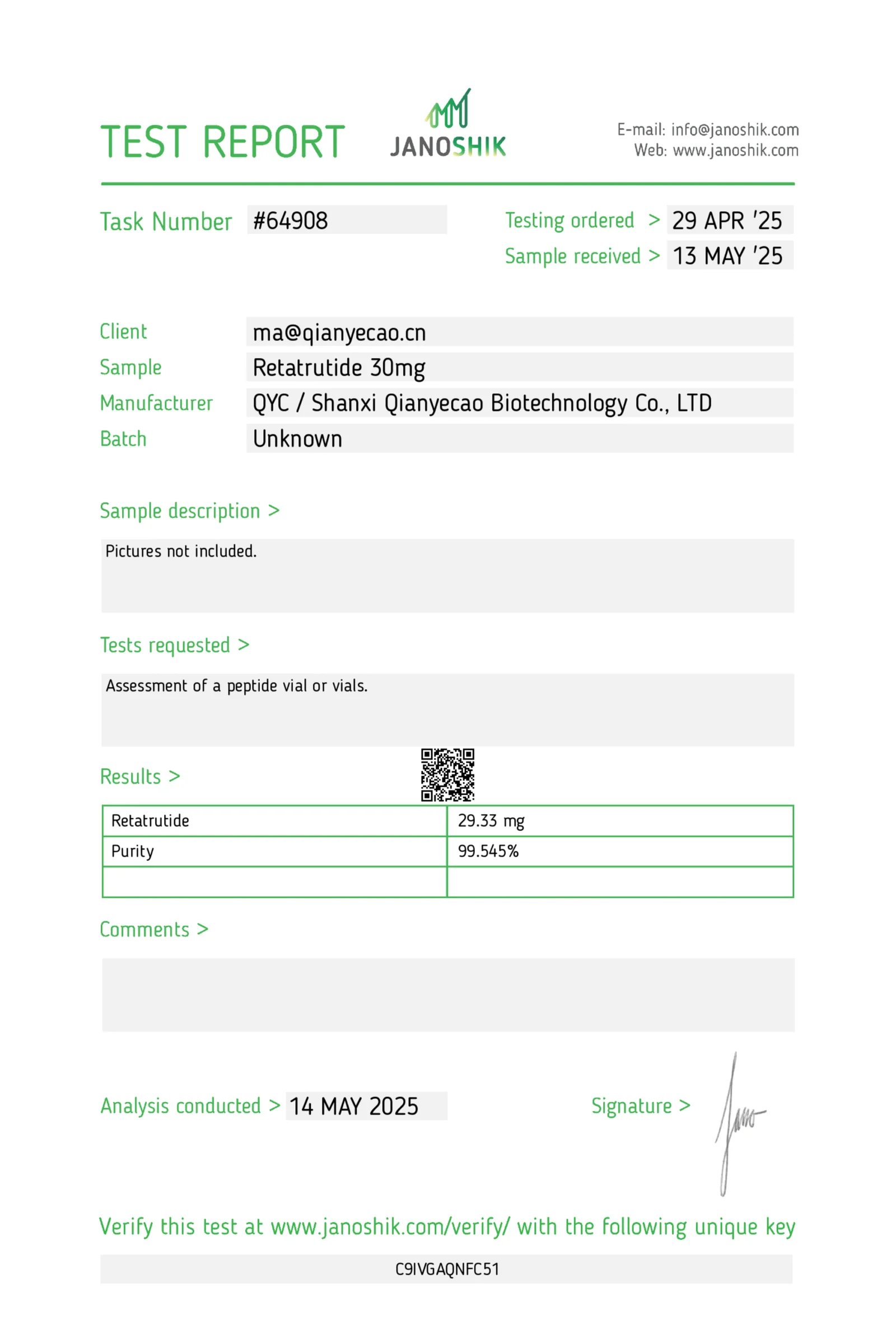 Appearance: lyophilized powder in a sealed research vial